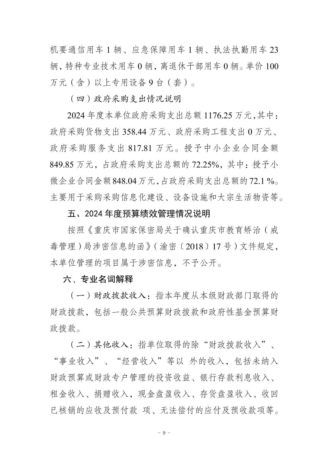 重庆市教育矫治局(本级)2024年度决算公开说明