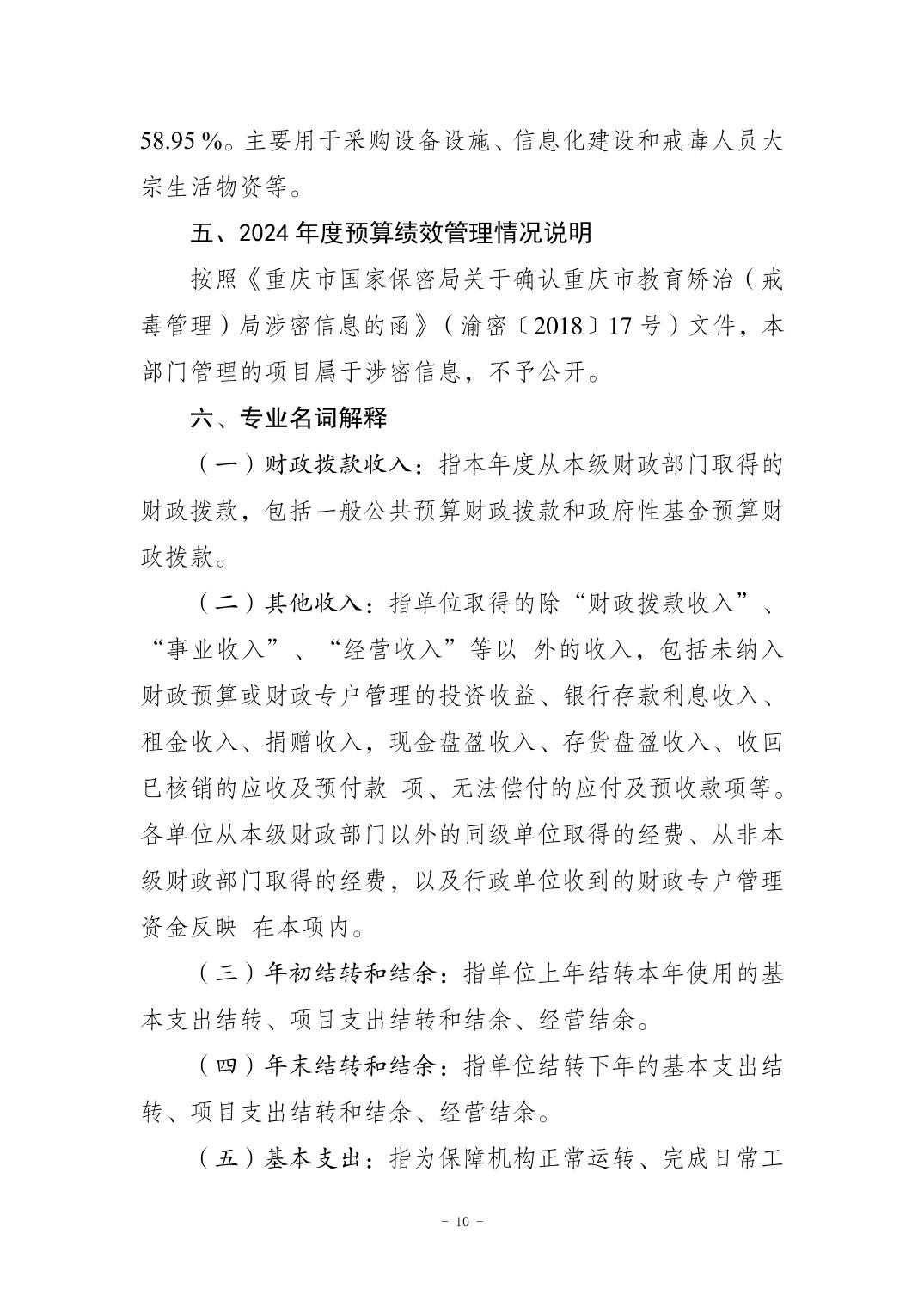 重庆市教育矫治局2024年度决算公开说明